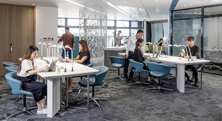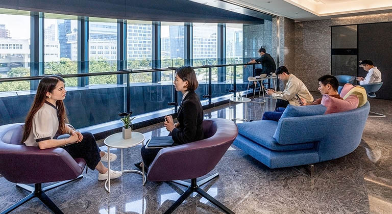 德事商務中心提供開放式協作空間,方便會員交流溝通與共同工作